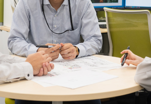 設計や製造部と打合せを行い、より良いモノづくりへの手助けをします。